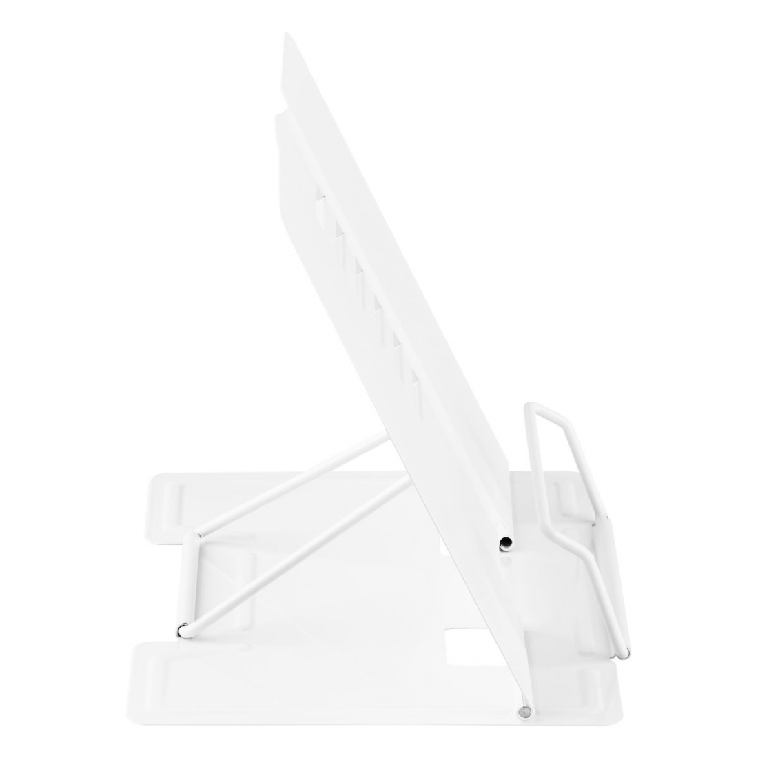 Подставка для книг «СТАММ» станет отличным помощником для детей школьного возраста. Использование подставки поможет сформировать правильную осанку. Угол наклона регулируется, что обеспечивает комфорт при перепечатывании и переписывании текста. Изделие отличает стильный и лаконичный дизайн. Металлическая подставка представлена в белом цвете. Размер изделия — 210*220 мм. Подставка для книг СТАММ упакована в ПВХ-бокс.