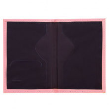 Модель выполнена из экокожи розового цвета с эффектом soft-touch и украшена тиснением в виде надписи "Passport" – на обложку нанесено изображение самолета и карты мира. Имеет простроченные края и мягкую изолоновую вставку. На внутреннем развороте расположены два кармана из прозрачного пластика. Благодаря компактным размерам 98х141 мм документ в обложке удобно носить с собой.