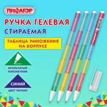 Ручка стираемая гелевая ПИФАГОР "ТАБЛИЦА УМНОЖЕНИЯ", синяя, 0,5мм., 144417 (36)