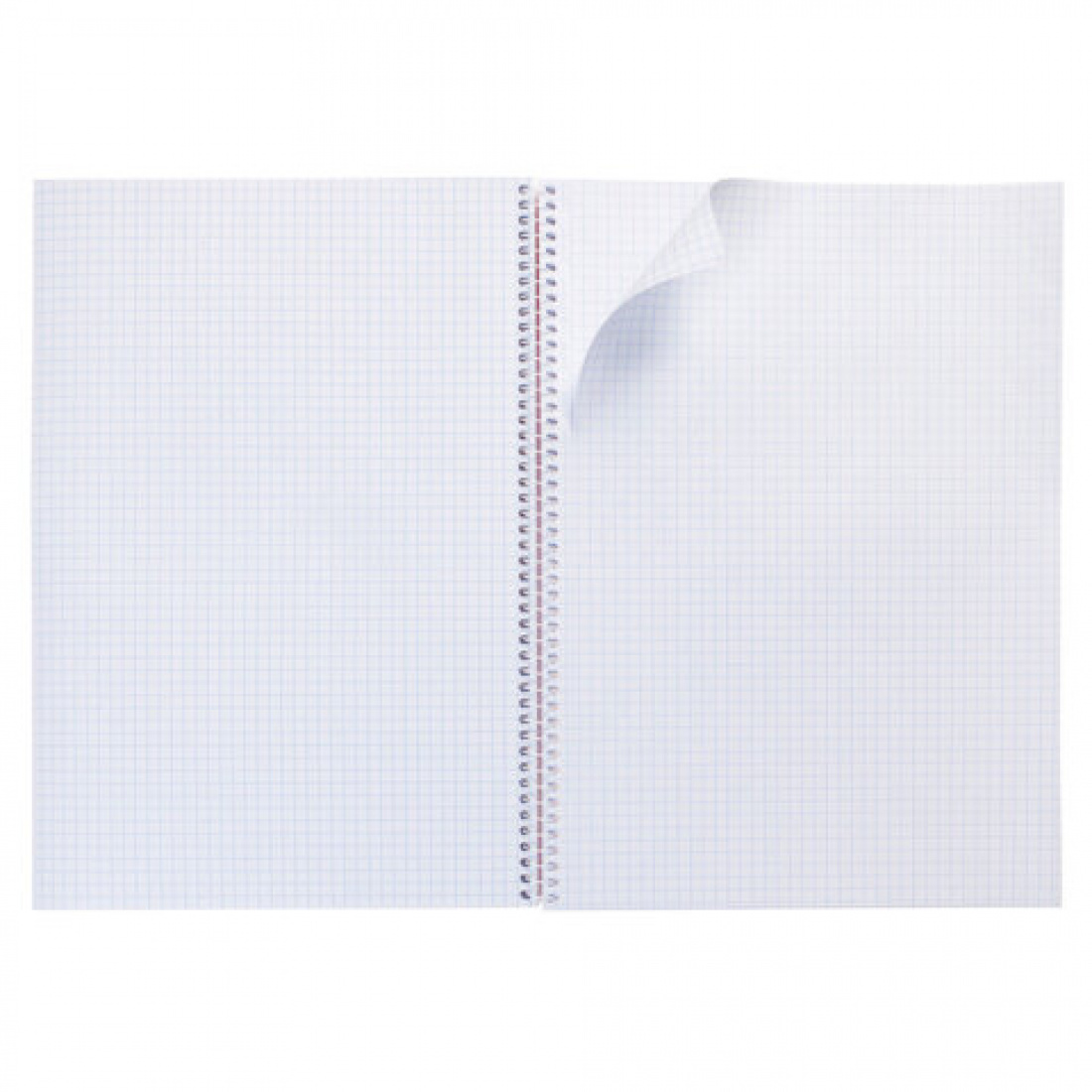 Тетрадь формата А4, 96 листов. Обложка – мелованный картон. Дизайн изделия дополнен матовой ламинацией и тиснением. Внутренний блок – офсет 60 г/м2, клетка. Перфорация на отрыв. Скрепление - спираль. Скрепление "спираль" дает возможность раскрывать тетрадь на 360 градусов.