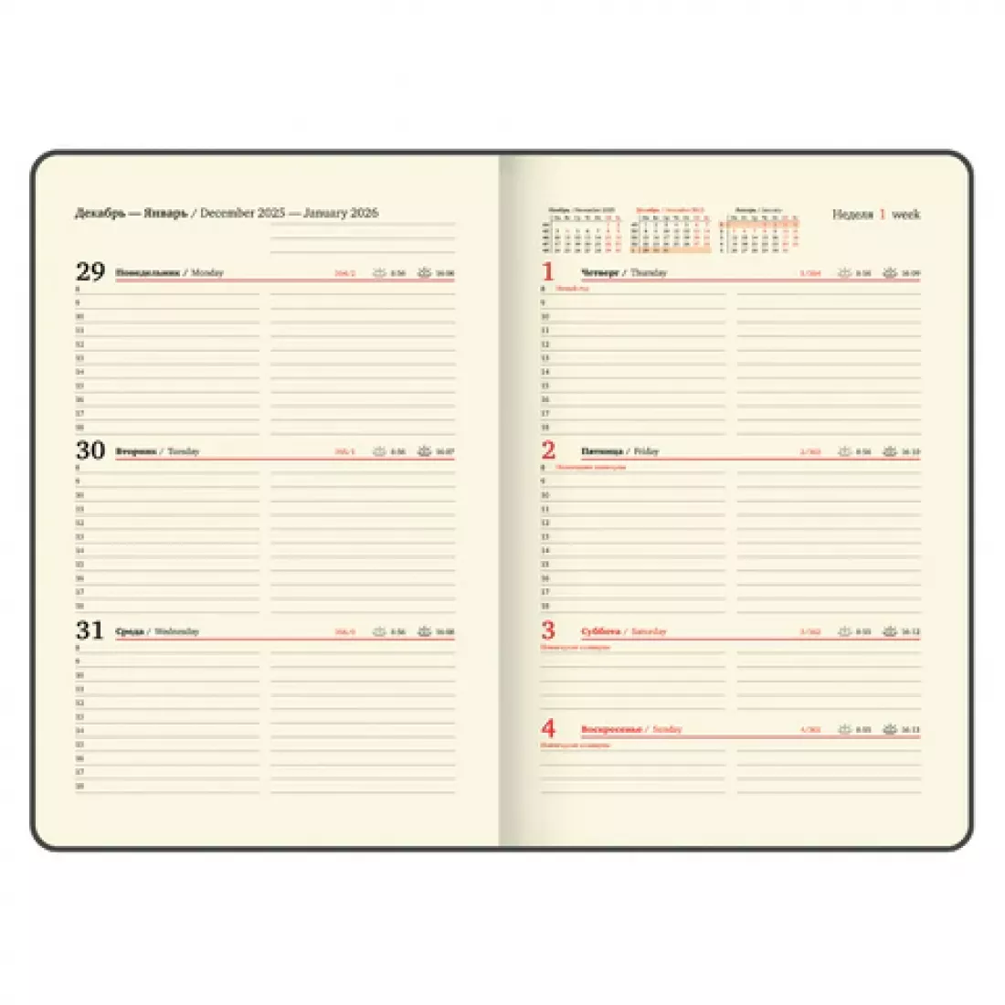 Еженедельник 2026г. А5 BRAUBERG Iguana, под кожу, синий, 117170