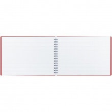 Износостойкая обложка выполнена из красного пластика и украшена тиснением фольгой. Внутренний блок состоит из 60 листов офсетной бумаги в клетку и плотностью 60 г/м² с печатью в 1 краску.