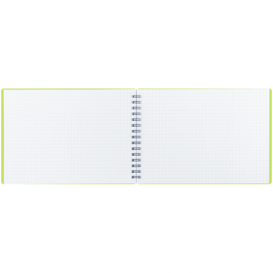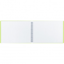 Яркая износостойкая обложка выполнена из салатового пластика и украшена тиснением фольгой. Внутренний блок состоит из 60 листов офсетной бумаги в клетку и плотностью 60 г/м² с печатью в 1 краску.