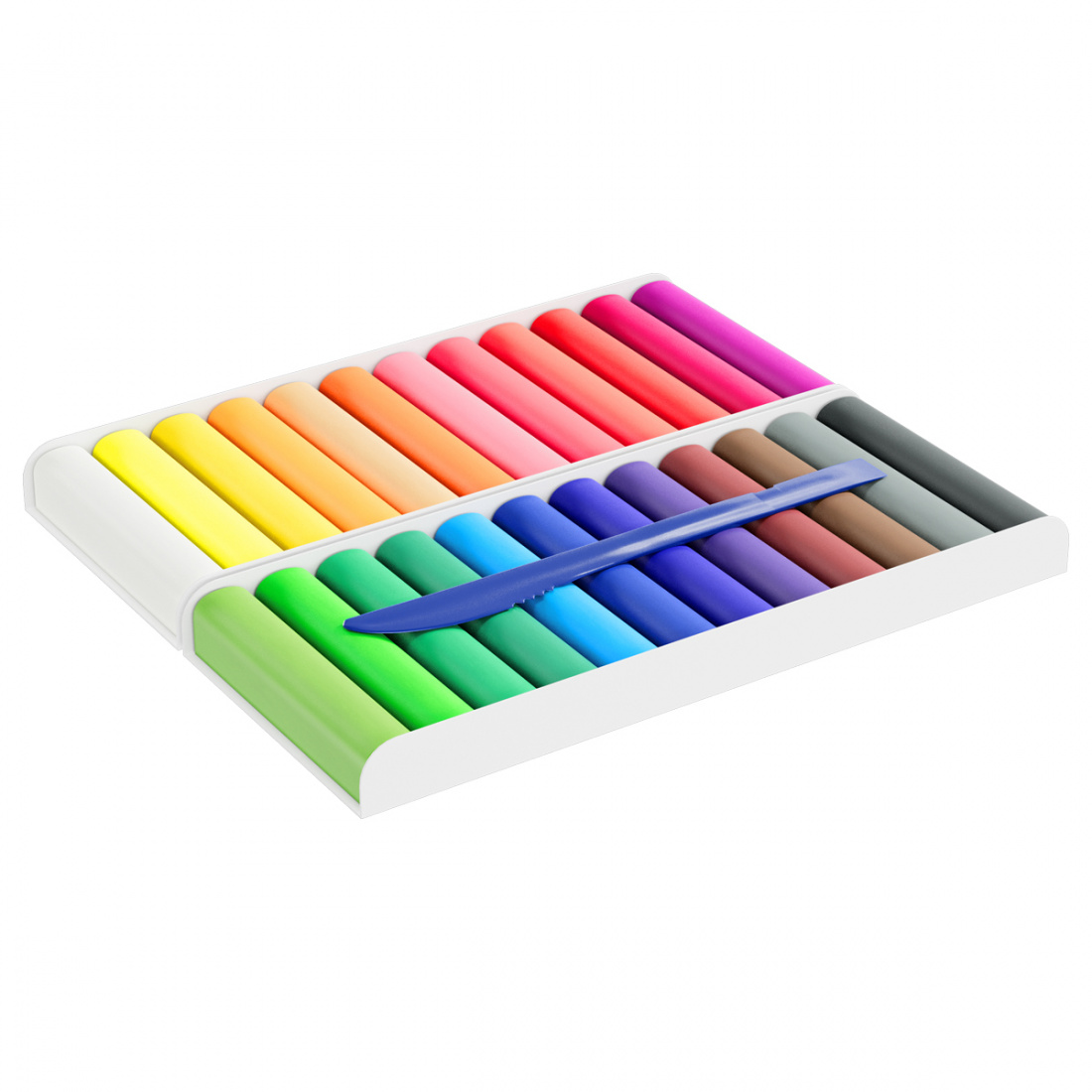 Восковой пластилин Гамма серии «Пчёлка» с новой удобной формой брусков. Вес бруска — 12 г. Разработан специально для детей от 3 до 6 лет. В наборе 24 цвета. Благодаря высокому содержанию мягкого воска пластилин очень легко разминается детскими ручками. Не пачкает руки и рабочую поверхность. Пластилин ярких сочных цветов отлично подходит для фигурной лепки и создания картин.Цвета прекрасно смешиваются между собой. Пластиковый стек в комплекте. Бруски упакованы во флоупак и картонную коробочку.