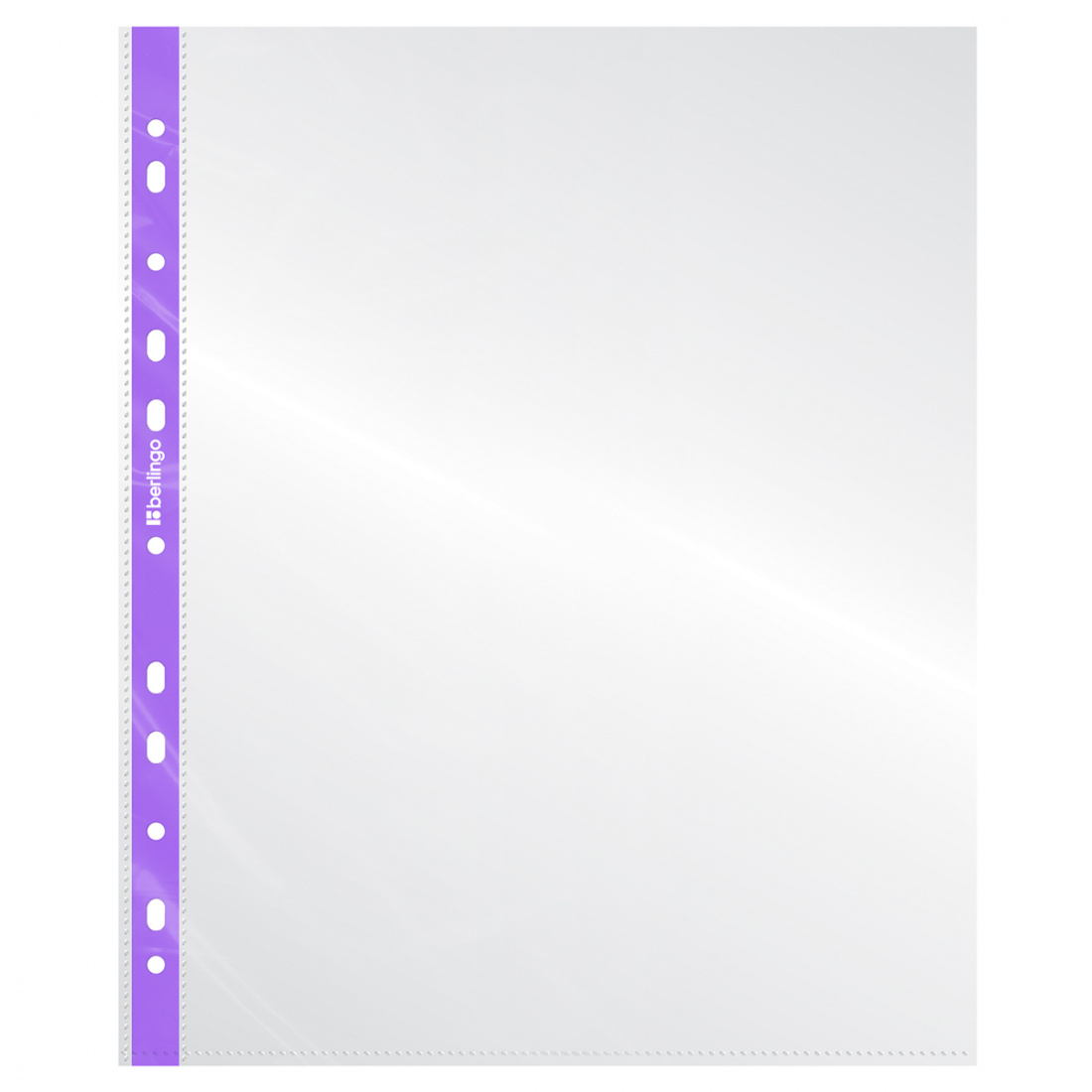 Глянцевые прозрачные файлы-вкладыши Berlingo "Mirror" формата А4 размера 305*235 мм предназначены для хранения неперфорированных документов в любых папках и защиты листов от внешних воздействий. Вертикальная ориентация, толщина пленки 50 мкм, вместимость файла от 50 до 100 листов бумаги, в зависимости от плотности. В упаковке 100 папок-вкладышей. Благодаря уникальной технологии производства, при которой используется до 40 % больше материала, достигается максимальная прочность каждого вкладыша. Белый логотип бренда на сиреневой боковой ленте.