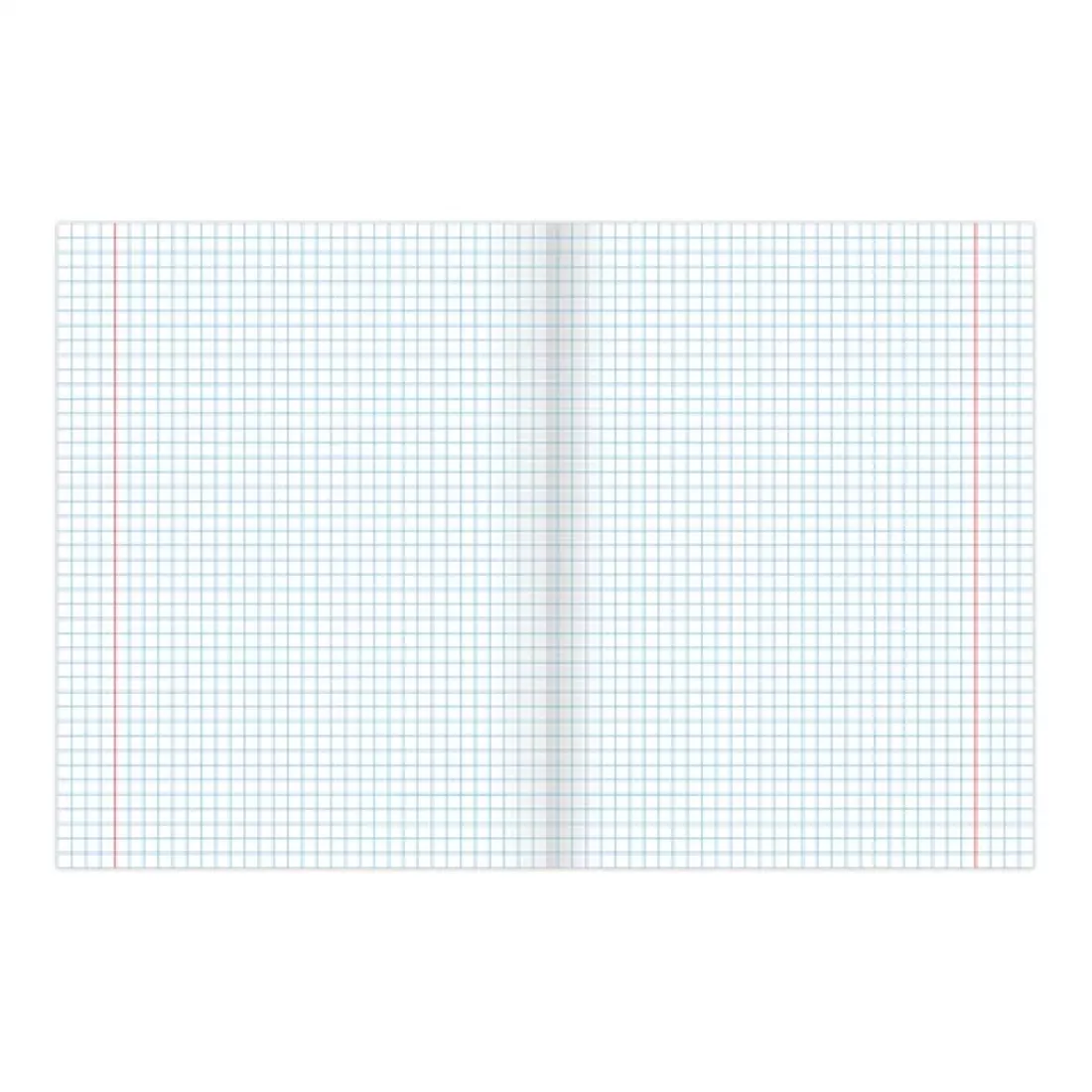 Внутренний блок плотностью 65 г/м2 из офсетной бумаги имеет линовку клетку с полями. Содержит 18 листов. Обложка изготовлена из импортного мелованного картона. Скрепка надежно скрепляет листы между собой.