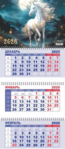 Календарь квартальный на 2026 г., 3 блока, 3 гребня, бегунок, "Лошади. Романтика" LAMARK91835Артикул: 44289