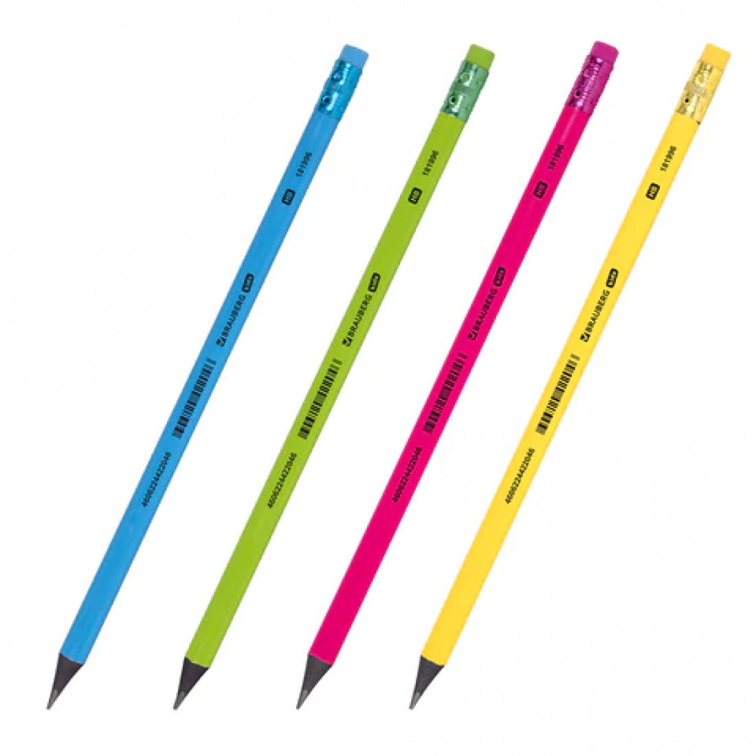 Карандаш чернографитный BRAUBERG "KIDS", HB, с ластиком, 181996 (72)
