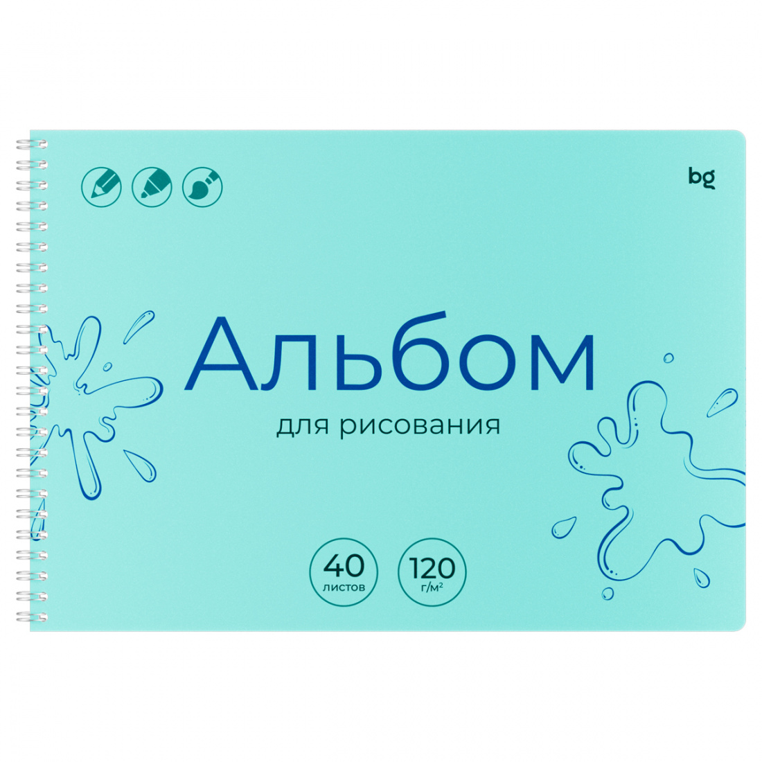 Альбом для рисования 40л BG "UniTone. Blue" на гребне, пластик., обложка, 120г/м2, 06076 (2/24)