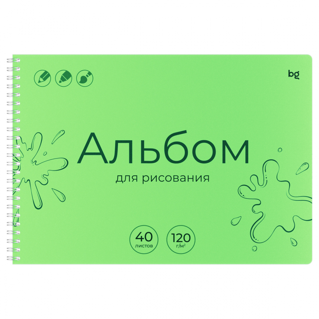 Альбом для рисования 40л BG "UniTone. Green" на гребне, пластик., обложка, 120г/м2, 06073 (2/24)