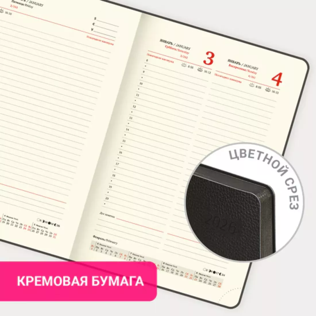 Ежедневник 2026г. А5 BRAUBERG "Stylish", под кожу, гибкий, черный, 117097