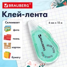 Клей-лента BRAUBERG MAXI, 6 мм х 15 м, корпус зеленый, блистер, 273029