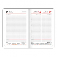 Дополнением является закладка-ляссе, с помощью которой при необходимости можно быстро открыть ежедневник на нужной странице. Ежедневник снабжен справочным материалом. В конце есть 4 страницы для записей и заметок.