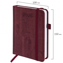 Ежедневник 2026г. А6 "BRAUBERG" Wood, под кожу, бордовый, 117265