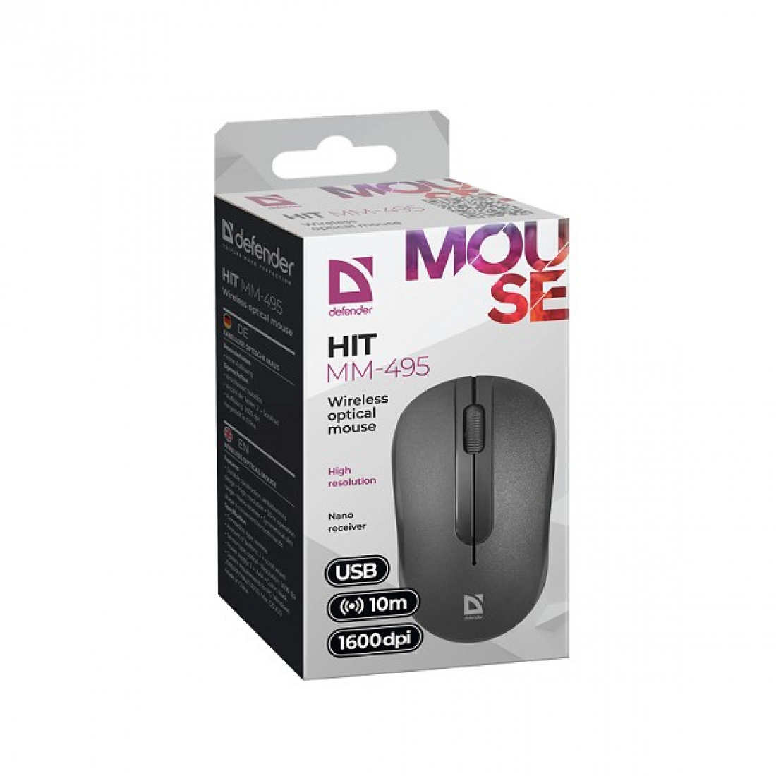 Мышь беспроводная Defender MM-495 Hit черная 52495 (2ААА не в комп.)