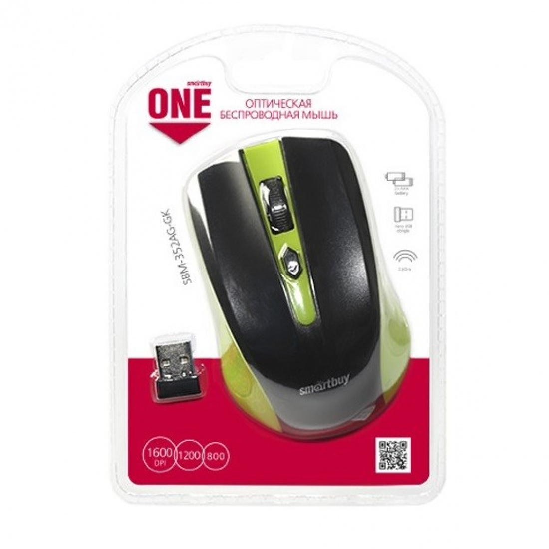 Мышь беспроводная SmartBuy SBM-352AG-GK черно-зеленая (2ААА не в комп.)