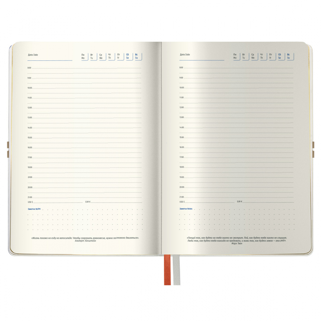 Классический недатированный ежедневник Berlingo "Casual Gold" формата А5 с интегральной обложкой из фактурной экокожи белого цвета. Удобная поперечная резинка надёжно фиксирует ежедневник в закрытом состоянии, а также может быть использована для крепления ручки. Золотой фольгированный срез красиво подчеркивает матовый белый цвет обложки. Внутренний блок состоит из 136 листов высококачественной кремовой бумаги повышенной плотности 80 г/м² с пантонной печатью в 2 краски. Размер ежедневника – 155 на 213 мм. Обновлённый внутренний блок содержит различные разделы как для организации рабочего времени, так и для систематизации личных планов, а также мотивирующие цитаты на каждый день. Раздел с постановкой годовых целей с разбивкой на этапы поможет сохранять фокус на самом важном. В ежедневнике выделен отдельный блок для заметок на отрывных листах. Дополнительный внутренний конверт поможет хранить необходимые заметки. 2 закладки-ляссе сделают использование ежедневника Berlingo комфортным. Комплект красочных наклеек внутри ежедневника станет приятным подарком. Упакован в индивидуальный брендированный пакет с клеевым клапаном.