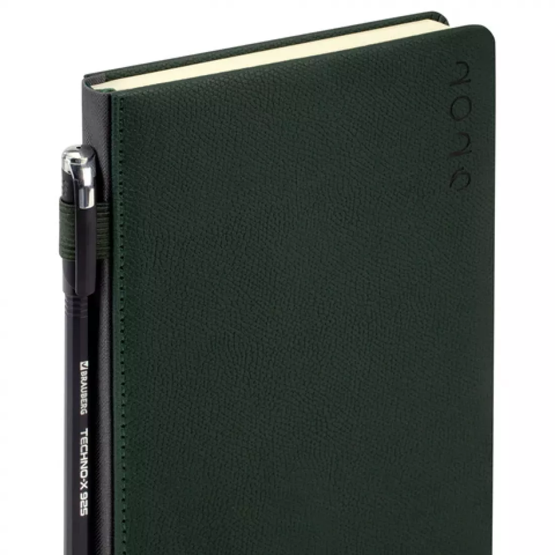 Ежедневник 2026г. А5 BRAUBERG "Essential", под кожу, держатель, т-зеленый, 117394