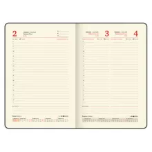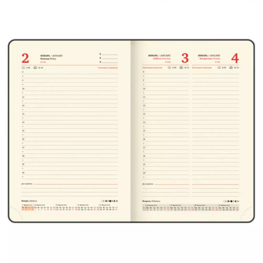 Датированный ежедневник BRAUBERG "Note" выполнен в лаконичном дизайне. Обложка из материала, имитирующего гладкую кожу, придаёт изделию аккуратный деловой вид. Внутренний блок включает 168 листов кремовой бумаги плотностью 70 г/м2. Каждая страничка имеет перфорированный угол. Благодаря классическому формату А5 (163х218 мм) ежедневник удобно использовать как в офисе, так и на выездных деловых встречах. Твердая обложка стилизована под кожу с легкой текстурной поверхностью, приятной на ощупь. Материал обложки подходит для горячего тиснения. Дополнениями являются две закладки-ляссе, с помощью которой при необходимости можно быстро открыть или зафиксировать нужную страницу, держатель для ручки. Резинка-фиксатор не позволит ежедневнику открыться в сумке или портфеле, поэтому страницы не помнутся. Ежедневник снабжен обширным справочным материалом. В конце имеются 4 страницы для записей и заметок. Датированный ежедневник BRAUBERG "Note" идеально подойдет для офисных работников и людей, занимающихся бизнесом. Товары бренда BRAUBERG – это стиль и практичность в сочетании с безупречным качеством и вниманием к деталям. Закажите ежедневник BRAUBERG "Note" и убедитесь в этом сами!
