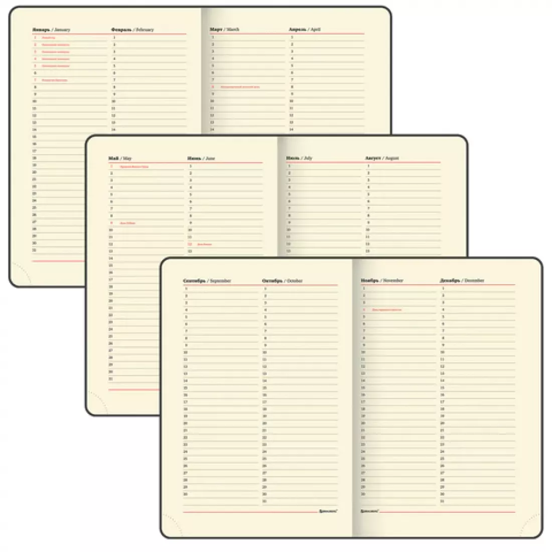 Тщательно планировать свое время на дни, недели, месяцы и даже годы вперед и не забывать о приоритетных задачах поможет ежедневник BRAUBERG "Iguana". Внутренний блок включает 160 листов тонированной бумаги плотностью 70 г/м2. Каждая страничка имеет перфорированный угол. Благодаря стандартному формату А5 (138х213 мм) ежедневник удобно использовать как в офисе, так и на выездных деловых встречах. Твердая обложка благородного белого цвета стилизована под кожу рептилии. Подходит для горячего тиснения. Срез ежедневника фольгирован золотой фольгой, что придает ему особый шарм. На форзаце располагаются карты России и мира. Дополнением является закладка-ляссе, с помощью которой при необходимости можно быстро открыть ежедневник на нужной странице. Помимо прочего, ежедневник снабжен обширным справочным материалом. В конце ежедневника есть 7 страниц для записей и заметок. Недатированный ежедневник BRAUBERG "Iguana" идеально подойдет для офисных работников и людей, занимающихся бизнесом, ценящих свое драгоценное время. Классика и модерн, стиль и практичность, совершенство и внимание к деталям – всем этим требованиям достойно отвечает продукция бренда BRAUBERG. Покупая ежедневники BRAUBERG Вы приобретаете индивидуальность!