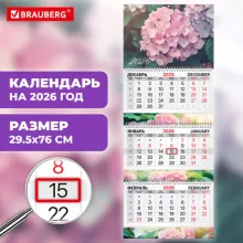 Календарь квартальный 2026 г., 3 блока, 3 гребня, бегунок, BRAUBERG EXTRA "Гортензия" 116826