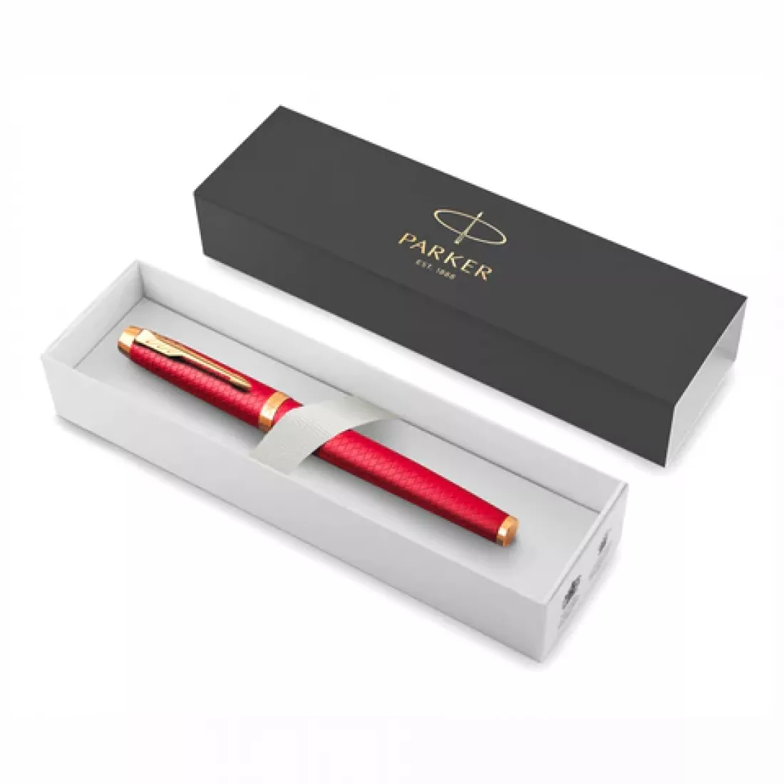 Ручка-роллер PARKER "IM Premium Red GT", корпус красный лак, позолоченные детали, черная, 2143647