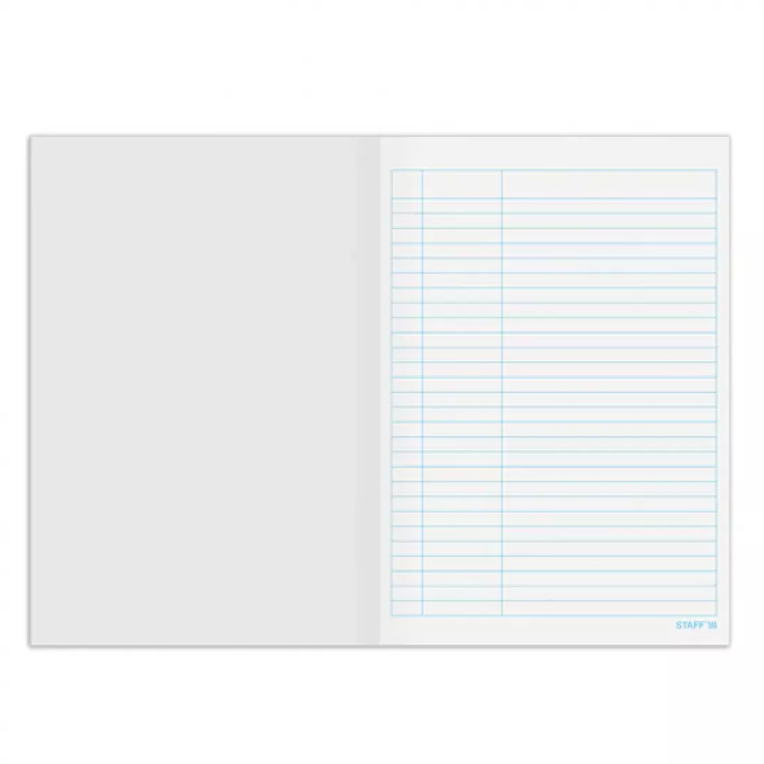 Книга учета STAFF незаменима для ведения различного рода записей в офисе, на складе, в магазине, фитнес-клубе и т. д. Мягкая обложка из мелованного картона плотностью 200 г/м2. Скрепление - скоба. Такое изделие сохраняет целостность в течение долгого времени. Внутренний блок 48 листов выполнен из офсетной белой бумаги 60 г/м2 и разлинован в линию со столбцами (пустографка). Книга учета STAFF обеспечит надежную сохранность важных данных и поможет структурировать информацию. Спешите приобрести все необходимое для организации трудовой деятельности!