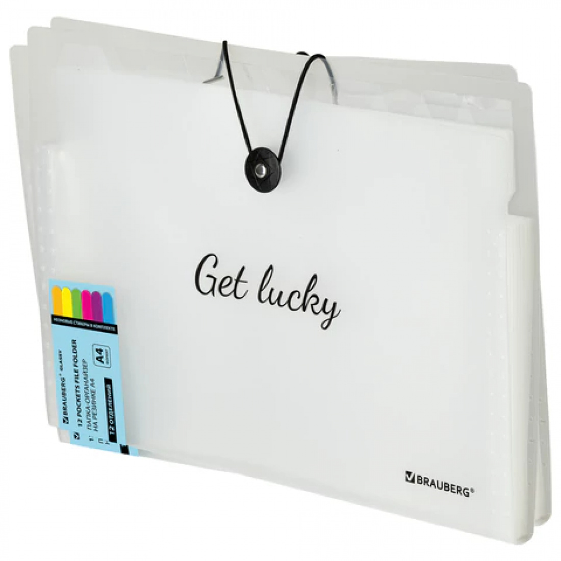Папка-органайзер на резинке 12 отделений, BRAUBERG "Glassy", А4, прозрачная, 271929