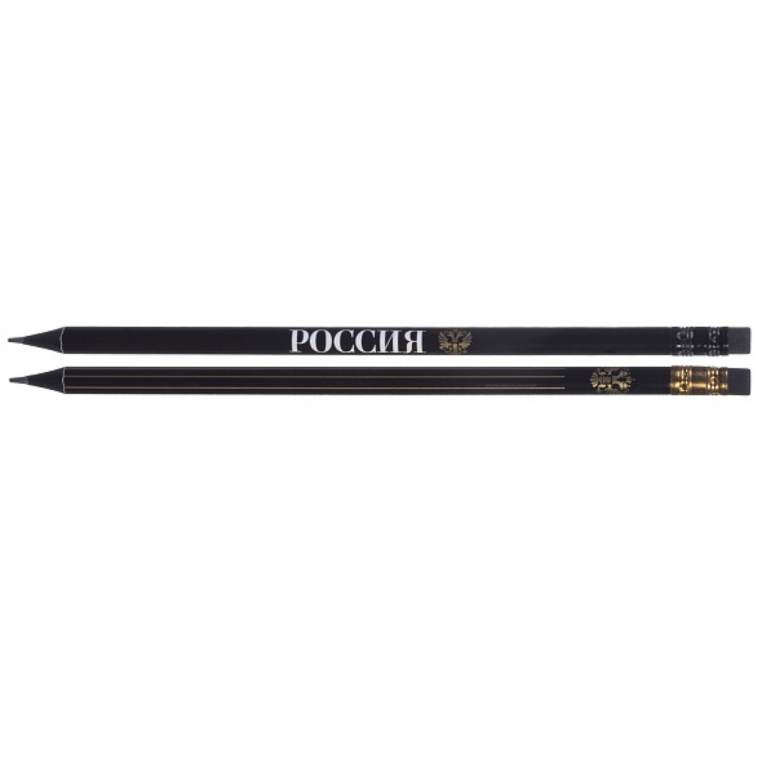Карандаш чернографит. -Символы России- НВ, черное дерево, с ластиком, Hatber BL_092652 (72)
