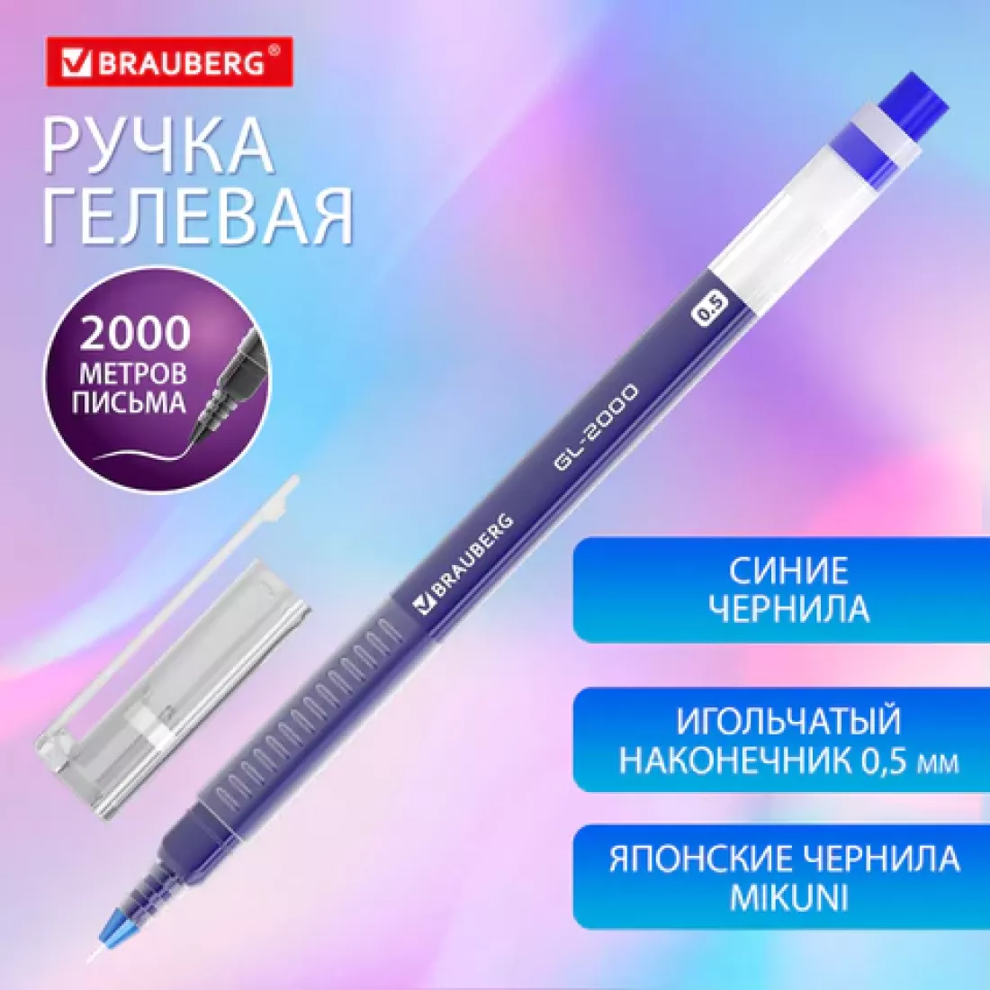 Ручка гелевая BRAUBERG "GL-2000" японские чернила, синяя, 144218 (12)