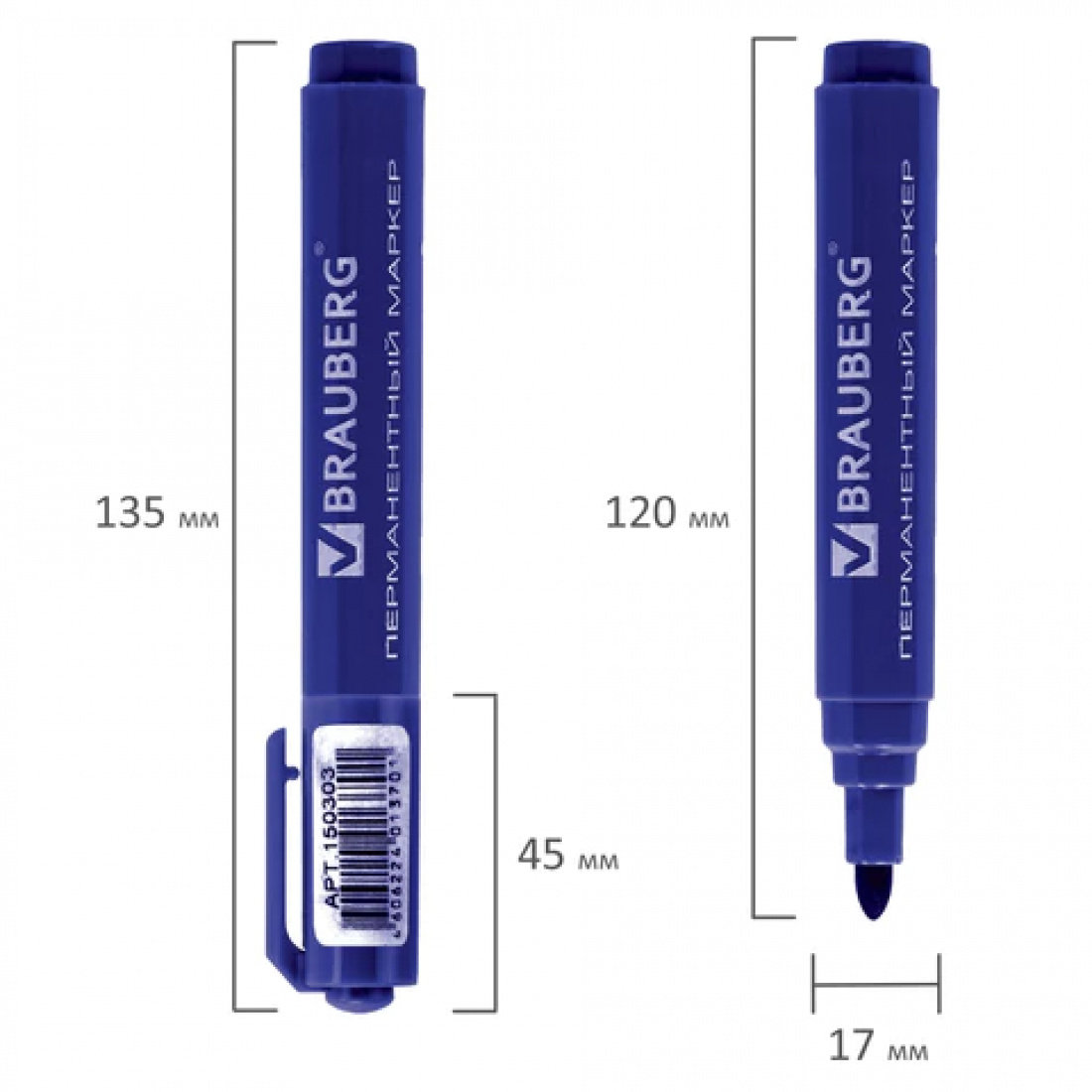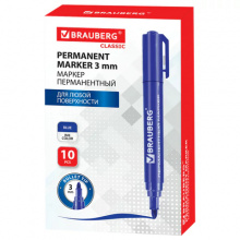 Маркер перманентный BRAUBERG "Classic" синий, 3мм., 150301 (10)