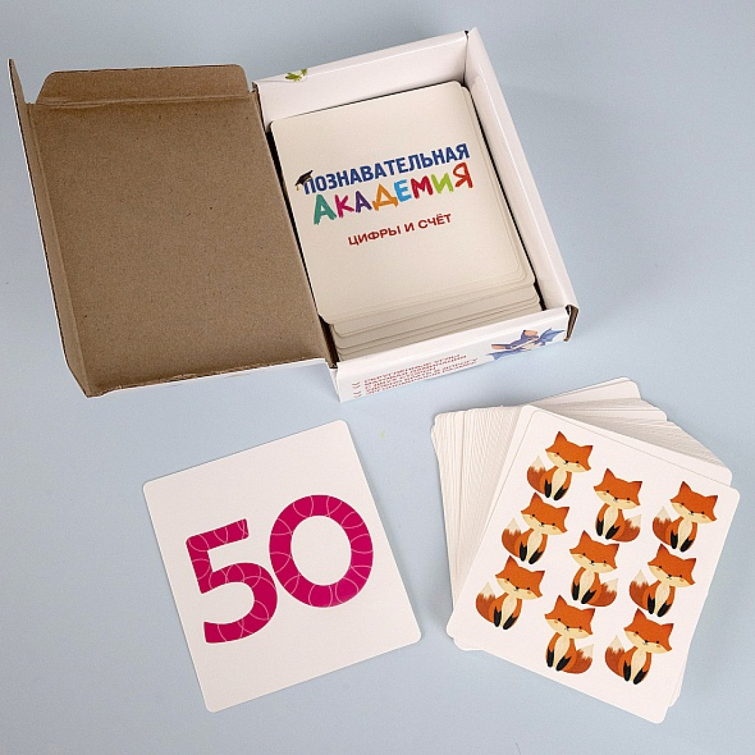 Развивающие карточки «Познавательная академия» изготовлены из мелованного картона с покрытием софт-тач - тактильно приятные и устойчивые к износу. Скругленные углы обеспечивают безопасность даже для самых маленьких детей. Компактная глянцевая коробка для хранения - яркая и прочная, позволяет брать набор с собой в дорогу, делает набор удобным для хранения и отличным вариантом для подарка.· Набор содержит 60 карточек.· Размер карточки 90х100мм. · Размер коробки 100х140х30мм.Набор станет отличным помощником для родителей и педагогов, желающих сделать обучение интересным, наглядным и эффективным! «Познавательная академия» - это эффективный инструмент для освоения базовых понятий и раннего развития.«Цифры и счёт» - это карточки с цифрами, яркими иллюстрациями, специальными знаками равенства и математическими символами. Такой комплект позволяет не просто познакомить малыша с числами, но и сделать первые шаги в решении простых примеров и составлении равенств.