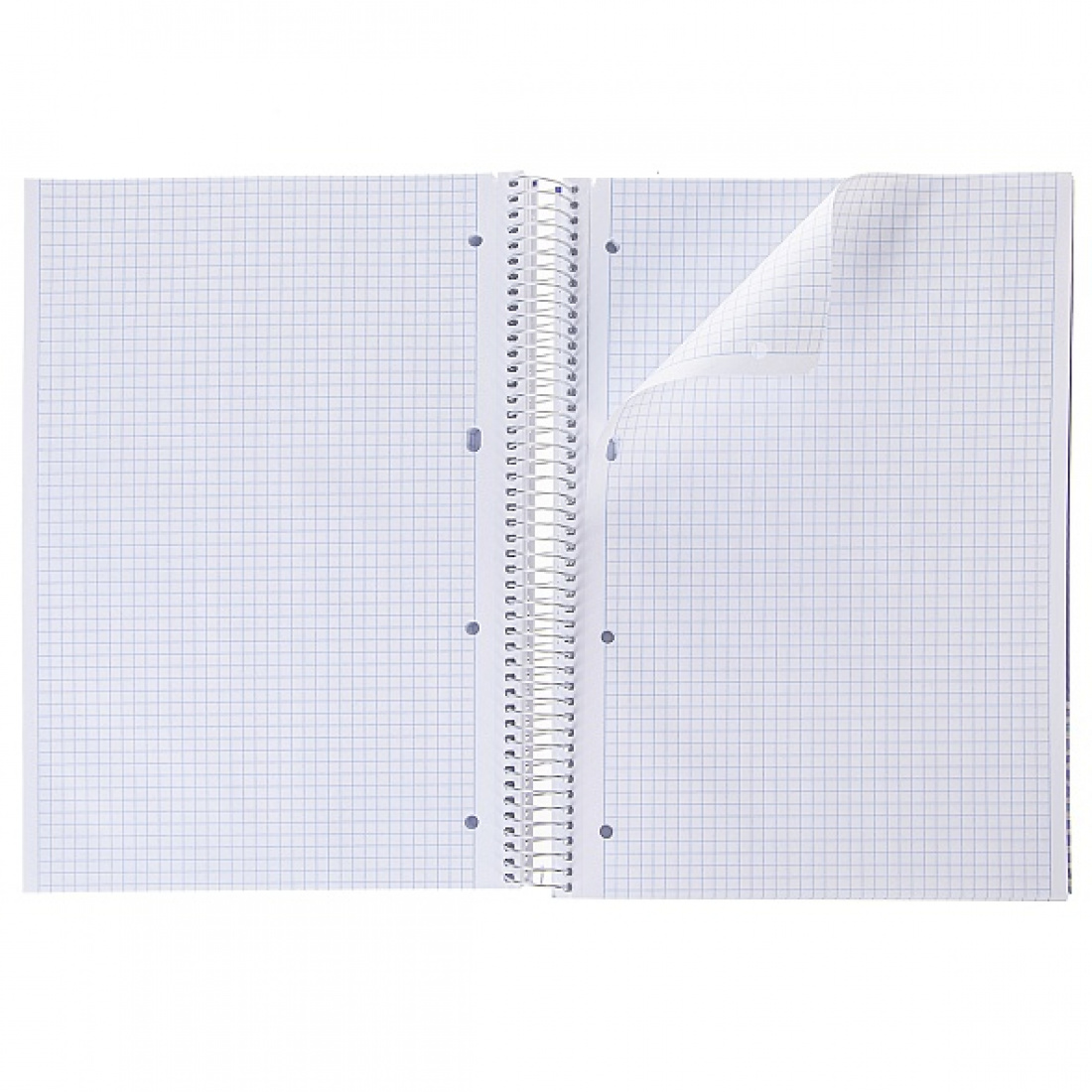 Тетрадь А4 формата 160 листов. Обложка: твердая. Внутренний блок: офсет 60-65 гр., клетка, многоуровневая перфорация. Ламинация глянцевая. Скрепление: спираль. Тетрадь предназначена для записей, используется студентами и в офисе. Внутренний блок имеет универсальную перфорацию для подшивки листов в папку, перфорация на отрыв имеет засечку для более удобного использования. Скрепление 'спираль' дает возможность раскрывать тетрадь на 360 градусов, а твердая обложка позволяет делать записи на весу. Многоцветный срез помогает разделять записи по тематическим рубрикам.