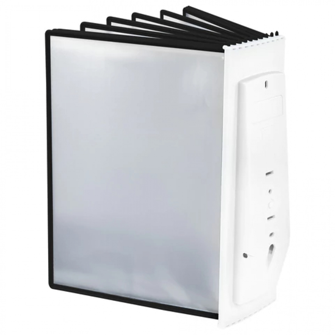 10 двусторонних панелей серого цвета позволяют разместить одновременно до 20 листов формата А4. Прозрачные вкладыши из ПВХ-материала с антибликовым покрытием надежно защитят документы от внешних воздействий и повреждений. Возможно как настольное, так и насте