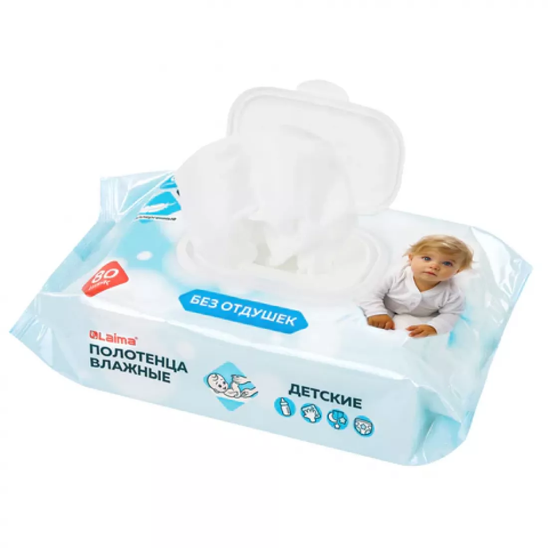 Полотенца влажные детские гипоаллергенные 80 шт., БОЛЬШИЕ 16,5х25 см, LAIMA Kids, 116525