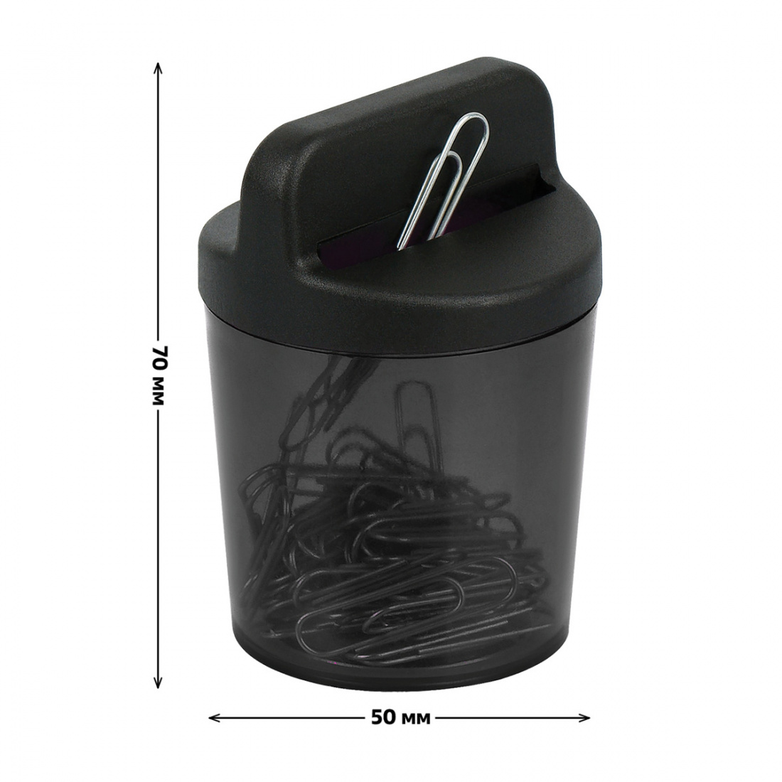 Скрепочница магнитная СТАММ, 50 скрепок, тонированная черная ПС-30436 (24)