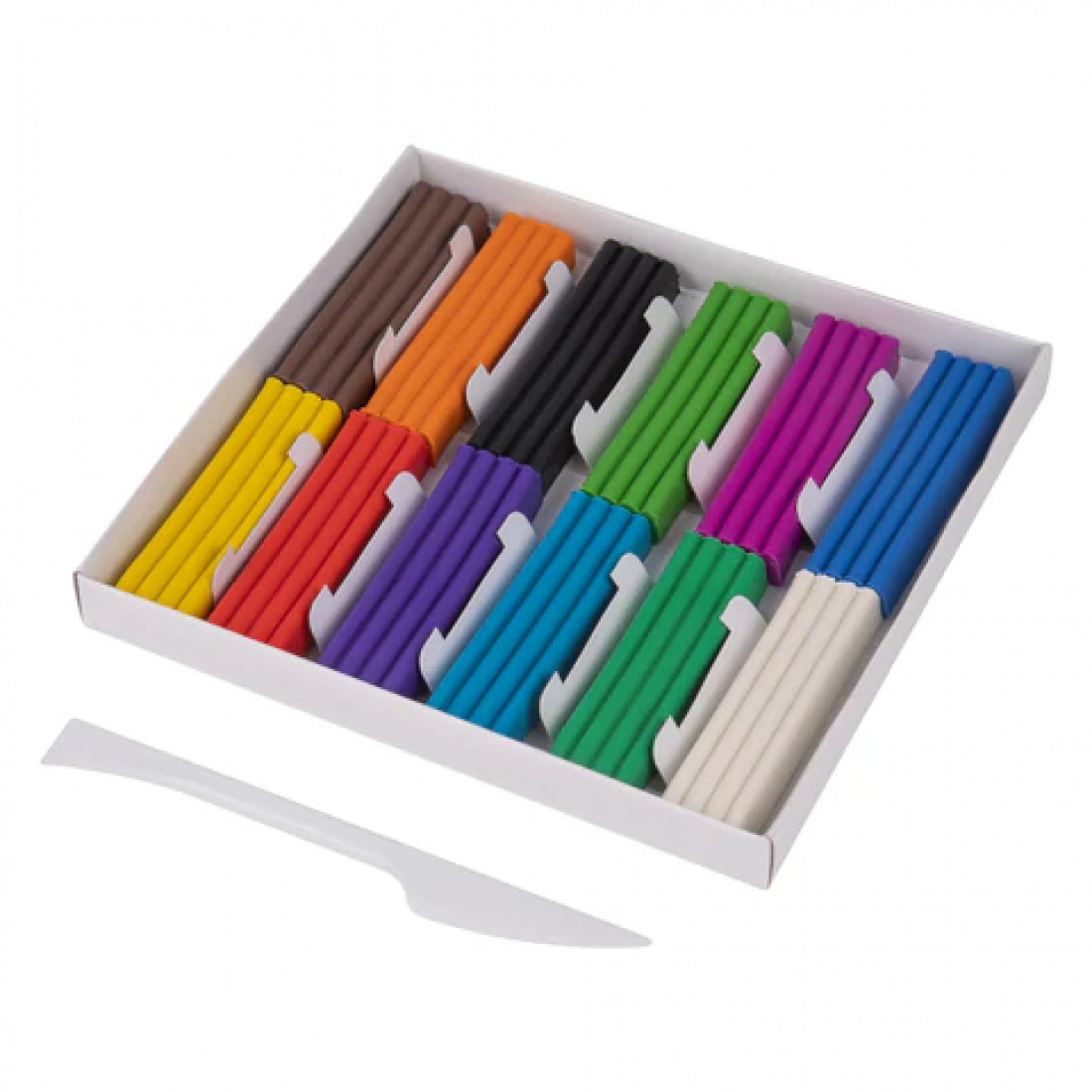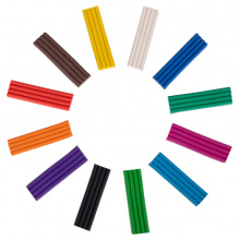 В составе набора 12 брусков по 20 г разных цветов: белый, черный, синий, красный, зеленый, желтый, светло-зеленый, коричневый, голубой, оранжевый, лиловый, фиолетовый. Масса набора - 240 г. Со стеком.