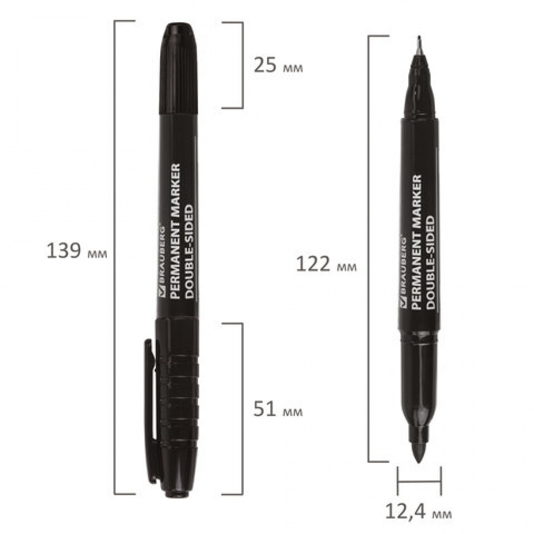 Маркер перманентный BRAUBERG "Double" двухсторонний, черный, 0,8/3мм., 151635 (12)