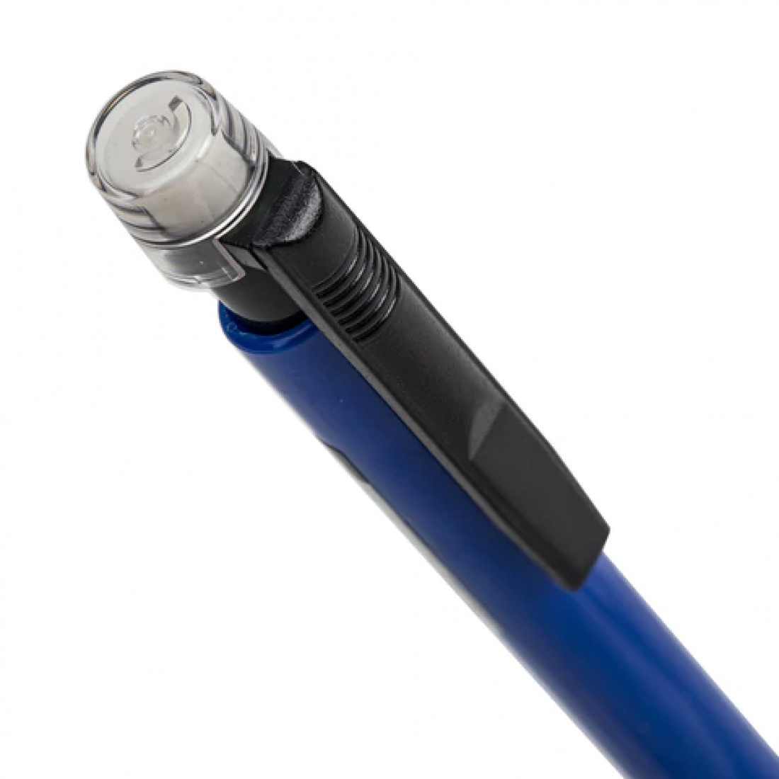 Карандаш с нажимным механизмом заправлен грифелем HB, всегда заточен, готов к работе и дает ровную линию 0,5 мм. Механический карандаш оснащен встроенным ластиком, с помощью которого можно быстро и легко исправить ошибку. Яркий синий корпус с прорезиненной зоной захвата обеспечивает повышенный комфорт при письме. Цанга карандаша убирается внутрь корпуса, поэтому даже на дне сумки или пенала такой карандаш не сломается.