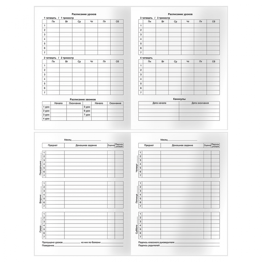 Школьный дневник «Жевательная резинка» от bg поможет ребёнку планировать время, придерживаться расписания, а родителям — следить за успеваемостью детей. Внутренний блок состоит из 48 листов плотностью 60 г/м², белизна 100 %. Тип скрепления — сшивка. Дневник позволяет составлять расписание на семь уроков. Твёрдая обложка с прямыми уголками выполнена из мелованного картона. Она надёжно защищает содержимое от повреждений. В отделке используются матовая ламинация и выборочный лак. На форзацах дневника есть справочная информация: дорожные знаки, правила перехода проезжей части, пожарная безопасность. Модель подойдет ученикам с 1 по 4 классы.