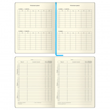 Внутренний блок состоит из 48 листов тонированной офсетной бумаги плотностью 70 г/м2. Печать блока в 1 краску. Учебный день рассчитан на 8 уроков. Дневник содержит 14 страниц для личных данных.